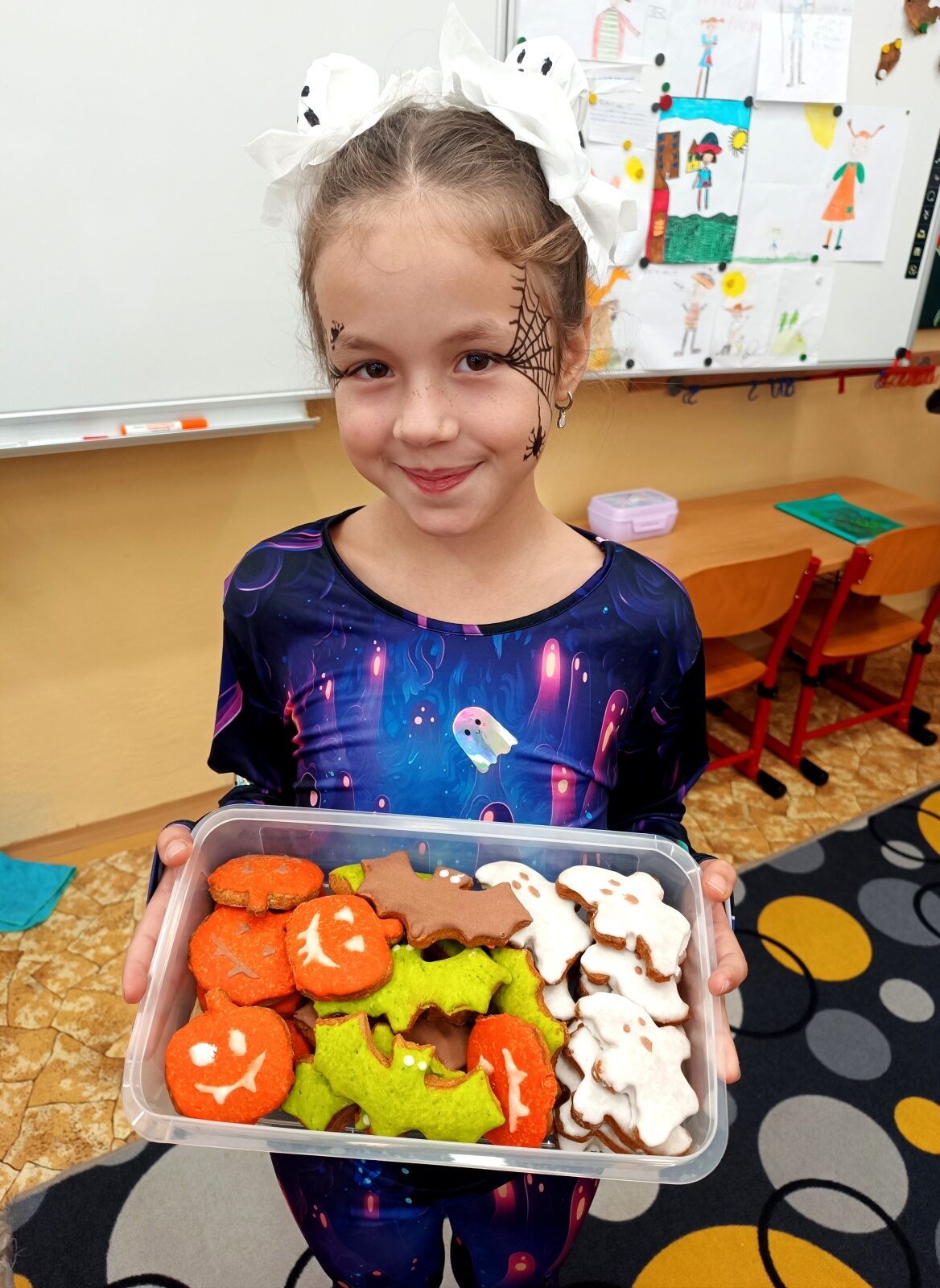 Byl to den plný zábavného učení, kreativity a společných zážitků. Velké poděkování patří rodičům, kteří doma připravili báječné halloweenské občerstvení – jen se po něm zaprášilo. 😊