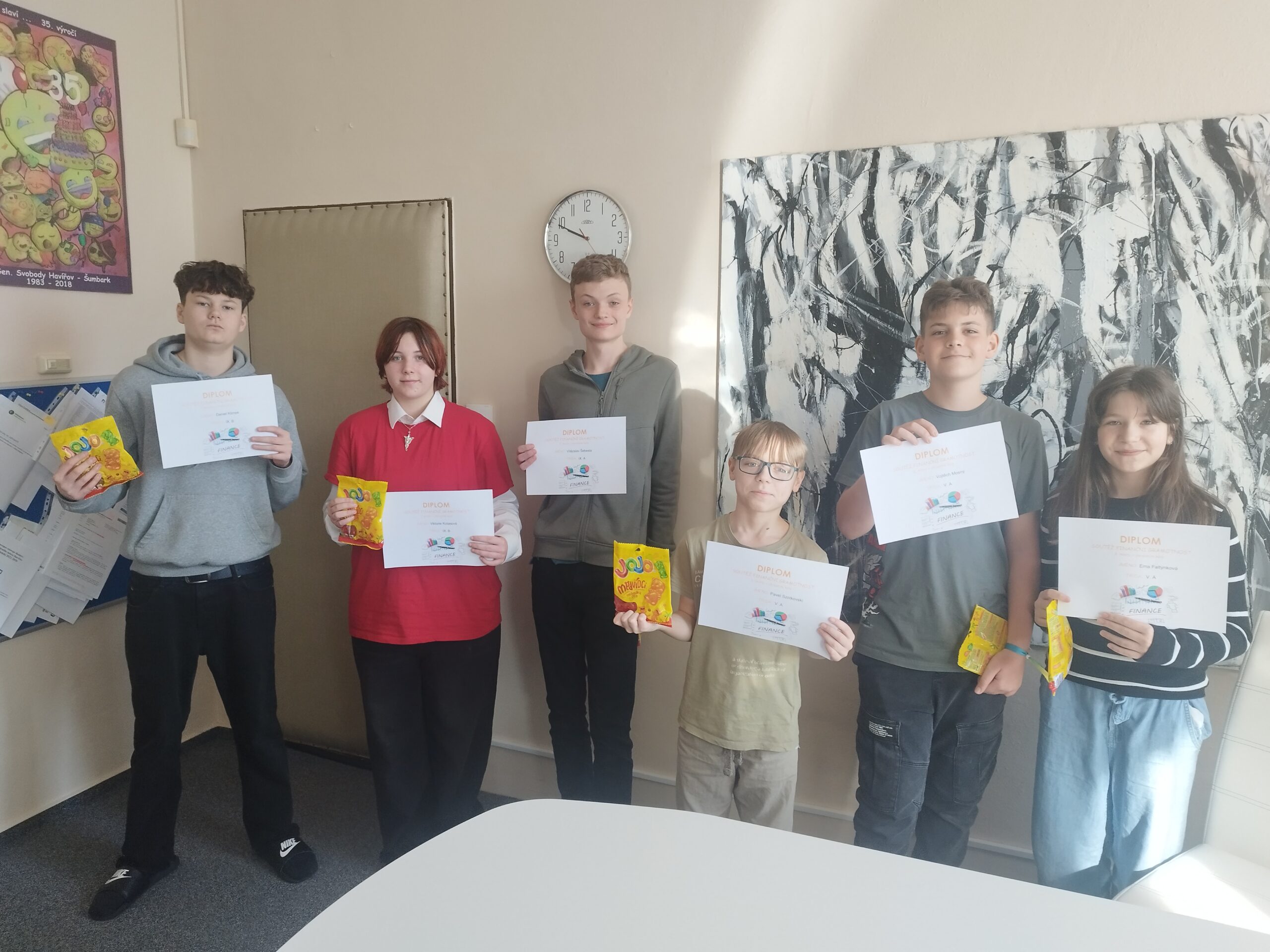 Letos opět na naší škole proběhla soutěž z finanční gramotnosti. Cílem soutěže je zatraktivnit výuku finanční gramotnosti na školách, doplňovat znalosti žáků, ověřovat jejich úroveň a seznamovat je se světem peněz, rodinného rozpočtu či základů investování. Soutěž je určena pro žáky a studenty základních a středních škol.